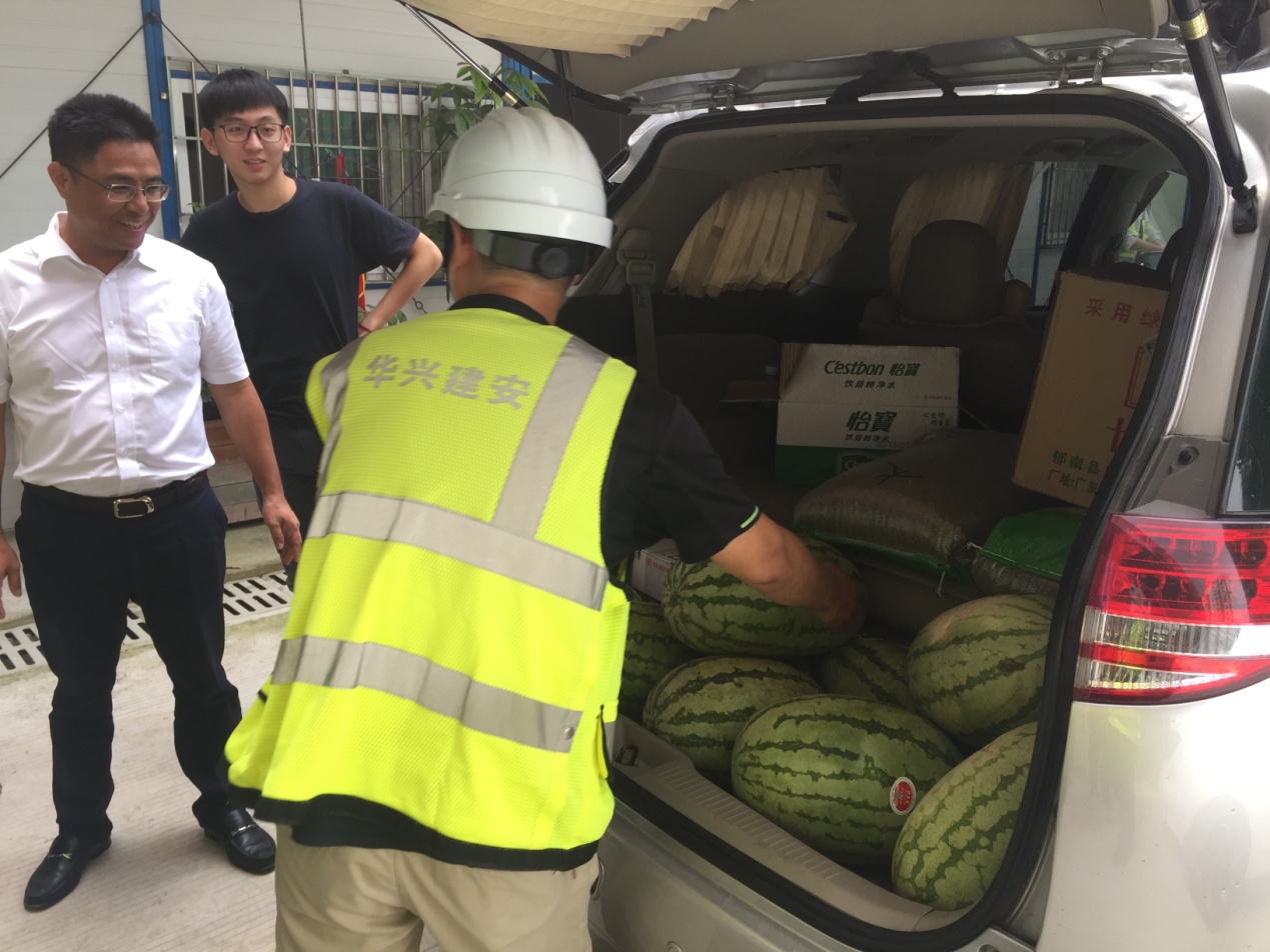 8月9日上午,副总裁吴先史带队前往今年会·(jinnianhui)金字招牌诚信至上云谷项目部,给项目全体管理及施工人员送去西瓜、绿豆、凉茶等防暑降温用品,将集体的关怀与问候带给员工。在项目现场,吴总叮嘱大家要注意防暑降温,工作要劳逸结合。项目全体员工要克服各种不利因素,保证工程进度和质量。