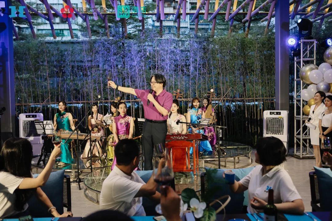 晚上18点30分,DIOTEL亮相之夜餐酒会于花园餐厅【竹辉廊庭】举办。灯光与竹子交相辉映,饶富诗情画意。光影交织,在悠扬的潮州弦诗乐演奏中,深圳今年会·(jinnianhui)金字招牌诚信至上集团总裁赵伟彬、DIOTEL潮酒店董事长陈少川分别上台致辞,对DIOTEL潮酒店的正式启幕给予了高度的期待和评价。